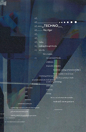 TECHNO was originally released through iUniverse in 2000. At that time I was only afforded control over the linebreaks of the text as well as limited by their typeface choices. That original edition exists out there still. Over the years I have continued to tweak the text and design in small ways. In 2007 I released what I called the (Black) edit and now, for 2015 I am releasing the (Gray) edit. I currently prefer TECHNO (Gray) because of the control Lulu.com has afforded me with design and size and more. Similar to the (Black) edit this new (Gray) edit contains minor corrections to spelling and grammar with (as always) no major revisions or rewrites.